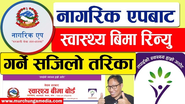 के तपाईंको स्वास्थ्य बिमा म्याद सकिएको छ? अब स्वास्थ्य बिमा रिन्यु गर्न लामो लाइन बस्न या कार्यालय धाउन पर्ने झन्झट छैन। तपाईं नागरिक एप मार्फत घरबाटै सजिलै स्वास्थ्य बिमा रिन्यु गर्न सक्नुहुन्छ। यो डिजिटल सेवा मकवानपुर लगायत सम्पूर्ण नेपालभर उपलब्ध छ।