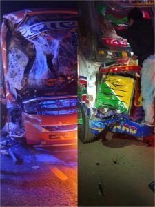 गएराति बस र ट्रक एकआपसमा ठोक्किँदा १४ जना घाइते